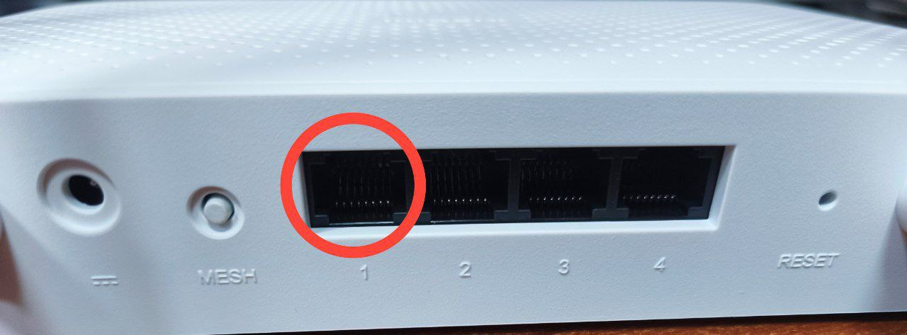 Кабель сети MATRIX подключите в разъём роутера под номером “1” ( на фотографии обозначен красным кругом)