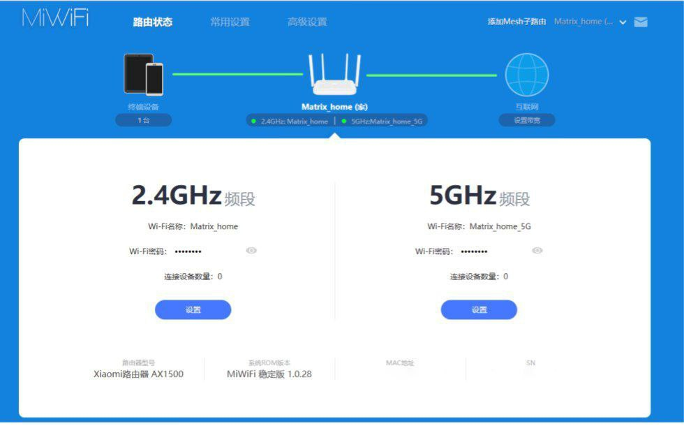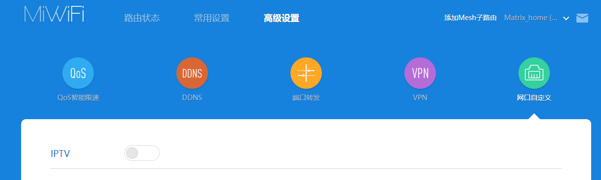 задаём в поле MAC-адрес, при необходимости, можно склонировать с ранее установленного маршрутизатора или другого устройства, подключённого к сети MATRIX. Для применения настроек нажимаем на синюю кнопку, расположенную слева. В течении нескольких секунд изменения будут применены. Для восстановления заводского MAC-адреса необходимо нажать синюю кнопку справа.
