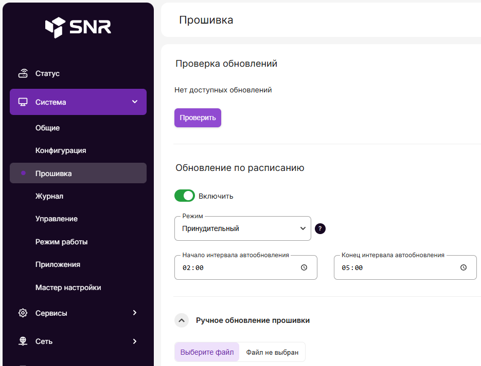 В меню «Система» → «Прошивка».