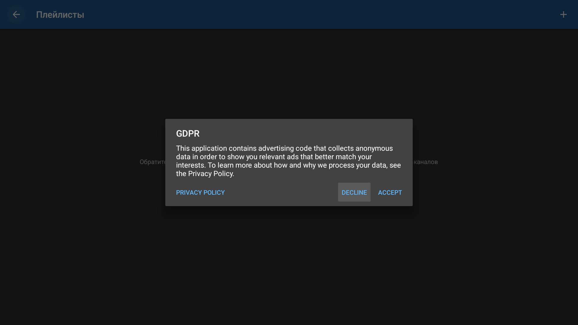 При первом запуске приложения мы увидим следующие сообщение, в котором выберем «DECLINE»:
