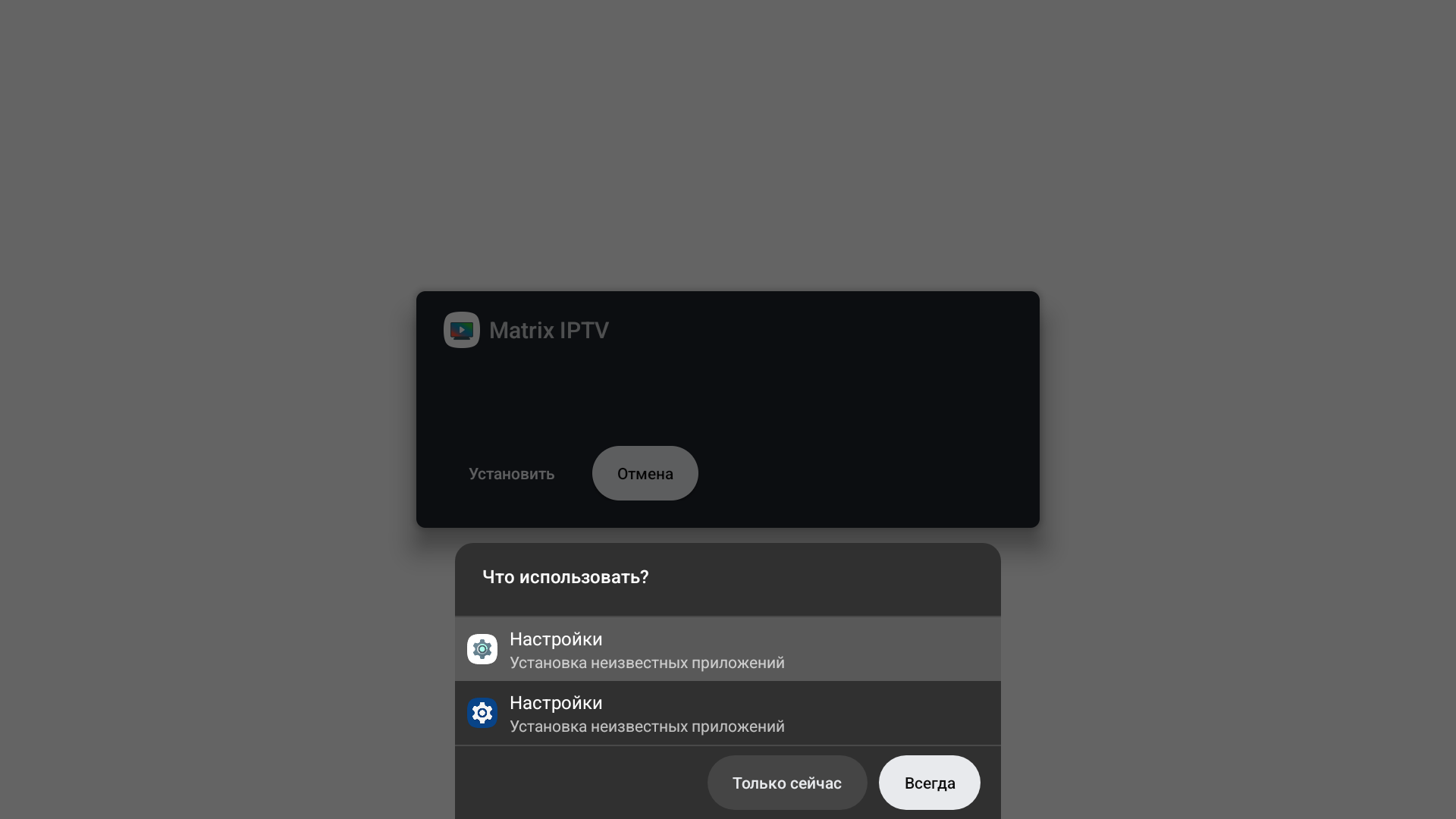 Впервые выбрав приложения для установки, нужно разрешить установку с источника нажав «Настройка»