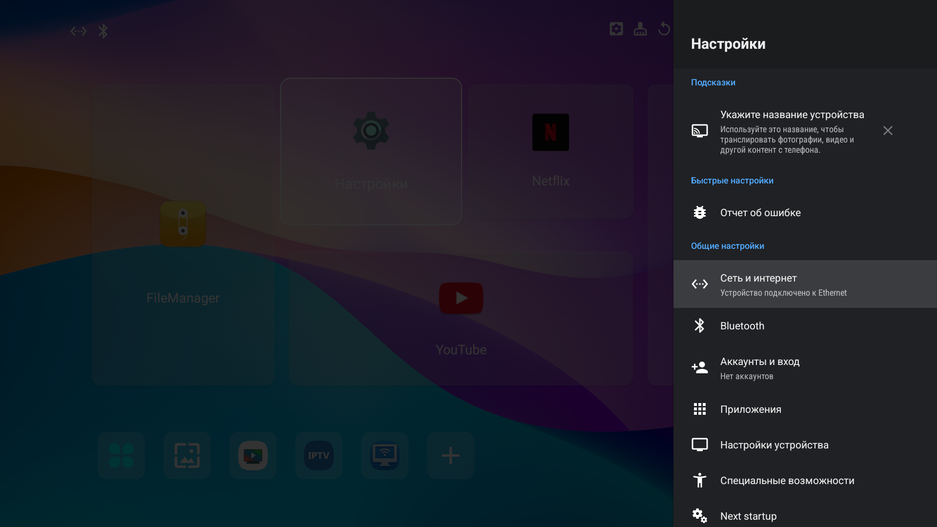 После завершения установки приложений перейдите в раздел Apps(значок слева снизу под File Manager) на главном экране ТВ-приставки: